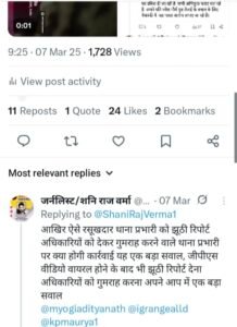 👉 क्षेत्र में फर्जी भौकाल बनाकर टहलते हैं थाना प्रभारी विनीत सिंह,थाने का स्टाफ भी नहीं है इनसे संतुष्ट , थाने मे पत्रकारों द्वारा जानकारी लेने पर भी है रोक, स्टाफ पर है सख्त निर्देश..