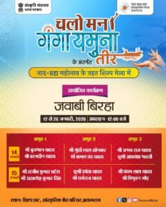 प्रयागराज। माघ मेला क्षेत्र स्थित संगम में 14 जनवरी को “चलो रे मन, गंगा-यमुना के तीर” थीम के अंतर्गत आयोजित सांस्कृतिक कार्यक्रमों की श्रृंखला में जवाबी बिरहा का भव्य आयोजन किया गया। कार्यक्रम में लोकगायिका आकांक्षा भारती एवं उनकी टीम ने सशक्त प्रस्तुति देकर श्रोताओं का मन मोह लिया।